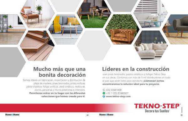 usan pisos laminados , pastos sintéticos y follajes Tekno-Step en sus obras . Contamos con más de 3 mil distribuidores en todo el país que están listos para atenderte . ¡ Llámanos ! juntos encontraremos la solución ideal para tu proyecto .