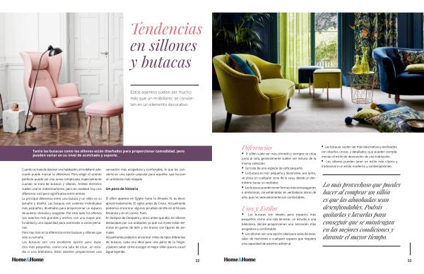 • Las butacas suelen ser más decorativas y estilizadas , con diseños únicos y detallados que pueden complementar el estilo de decoración de una habitación .