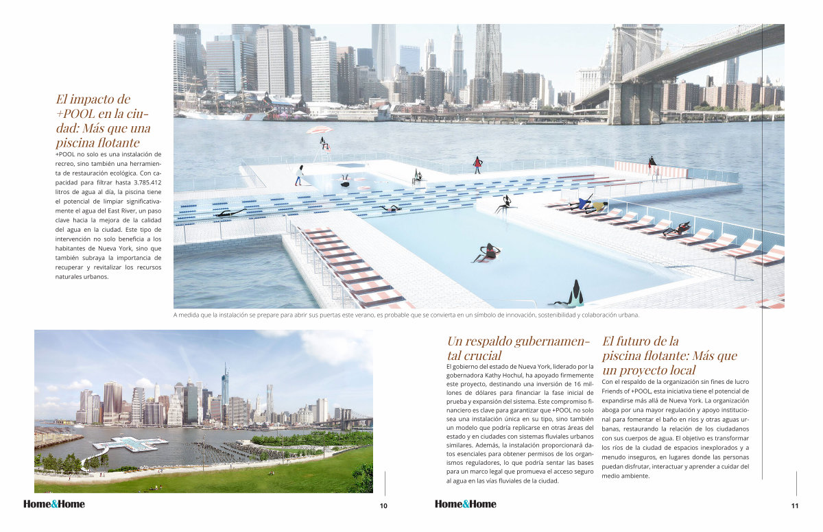 Con el respaldo de la organización sin fines de lucro Friends of + POOL, esta iniciativa tiene el potencial de expandirse más allá de Nueva York. La organización aboga por una mayor regulación y apoyo institucional para fomentar el baño en ríos y otras aguas urbanas, restaurando la relación de los ciudadanos con sus cuerpos de agua. El objetivo es transformar los ríos de la ciudad de espacios inexplorados y a menudo inseguros, en lugares donde las personas puedan disfrutar, interactuar y aprender a cuidar del medio ambiente.