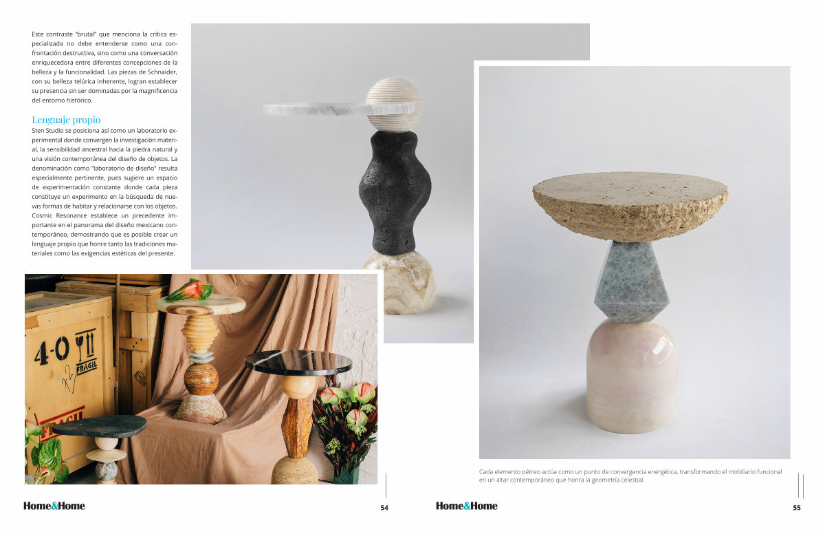 Sten Studio se posiciona así como un laboratorio experimental donde convergen la investigación material, la sensibilidad ancestral hacia la piedra natural y una visión contemporánea del diseño de objetos. La denominación como“ laboratorio de diseño” resulta especialmente pertinente, pues sugiere un espacio de experimentación constante donde cada pieza constituye un experimento en la búsqueda de nuevas formas de habitar y relacionarse con los objetos. Cosmic Resonance establece un precedente importante en el panorama del diseño mexicano contemporáneo, demostrando que es posible crear un lenguaje propio que honre tanto las tradiciones materiales como las exigencias estéticas del presente.