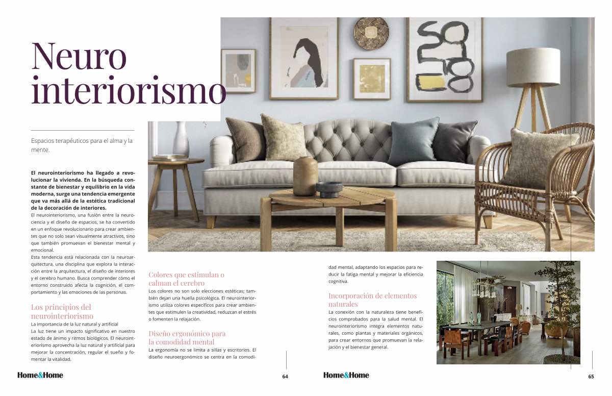 La conexión con la naturaleza tiene beneficios comprobados para la salud mental . El neurointeriorismo integra elementos naturales , como plantas y materiales orgánicos , para crear entornos que promuevan la relajación y el bienestar general .