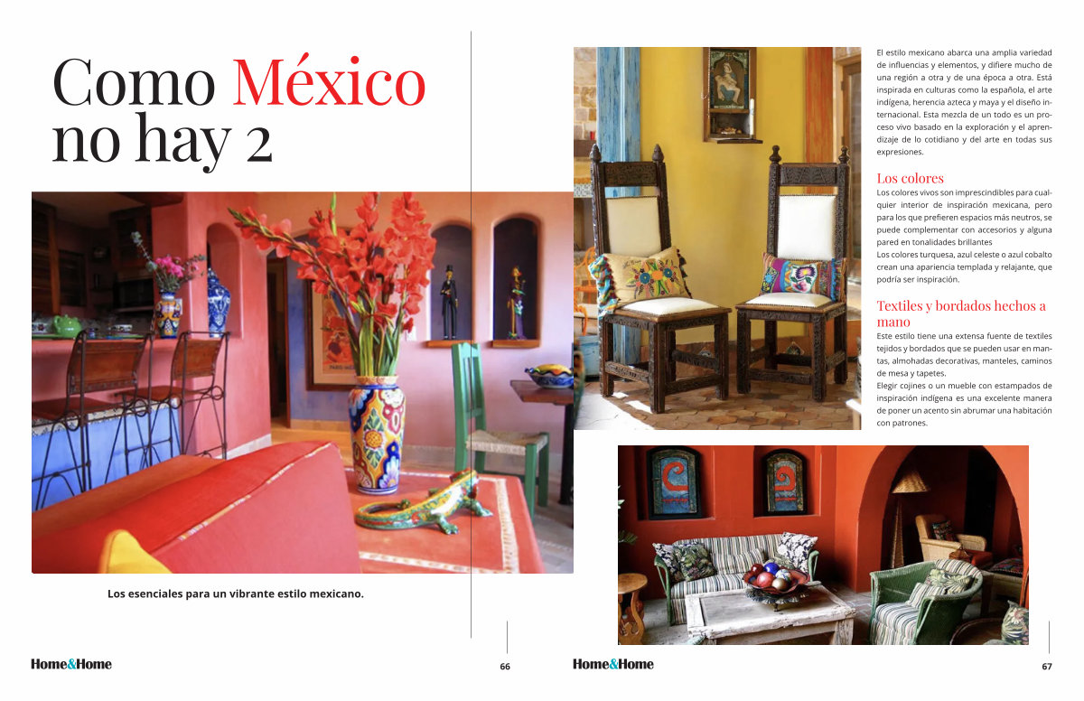 El estilo mexicano abarca una amplia variedad de influencias y elementos , y difiere mucho de una región a otra y de una época a otra . Está inspirada en culturas como la española , el arte indígena , herencia azteca y maya y el diseño internacional . Esta mezcla de un todo es un proceso vivo basado en la exploración y el aprendizaje de lo cotidiano y del arte en todas sus expresiones .
