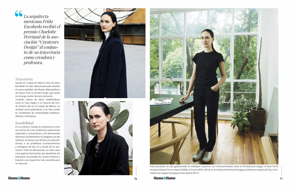 La arquitecta mexicana Frida Escobedo recibió el premio Charlotte Perriand de la asociación “ Createurs Design ” al conjunto de su trayectoria como creadora y profesora .