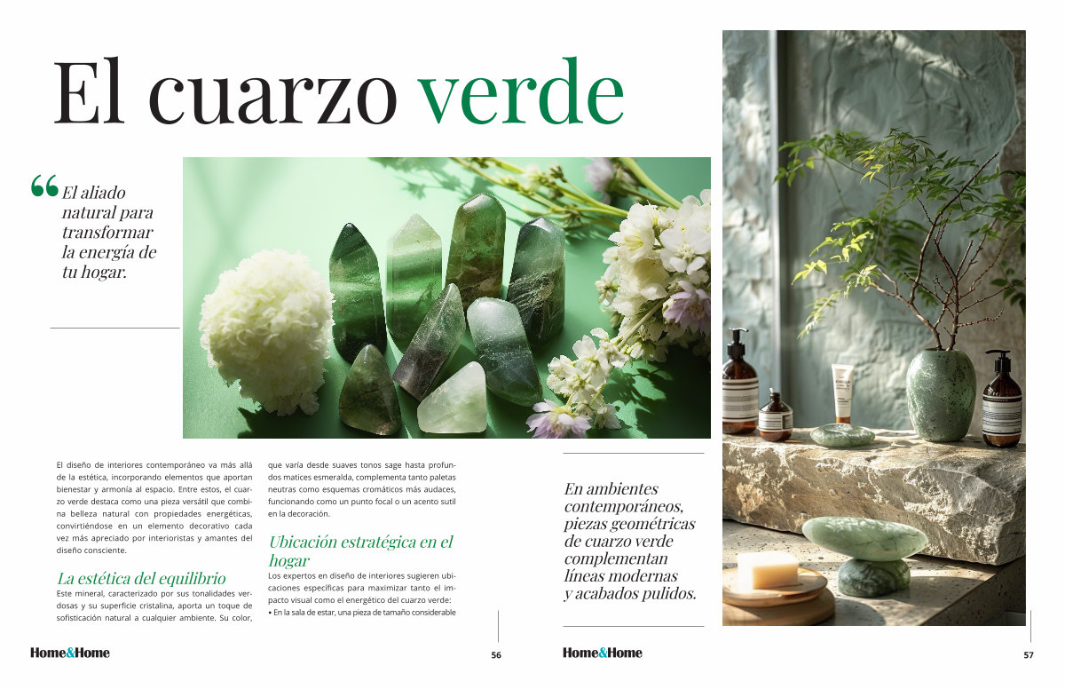 El diseño de interiores contemporáneo va más allá de la estética, incorporando elementos que aportan bienestar y armonía al espacio. Entre estos, el cuarzo verde destaca como una pieza versátil que combina belleza natural con propiedades energéticas, convirtiéndose en un elemento decorativo cada vez más apreciado por interioristas y amantes del diseño consciente.