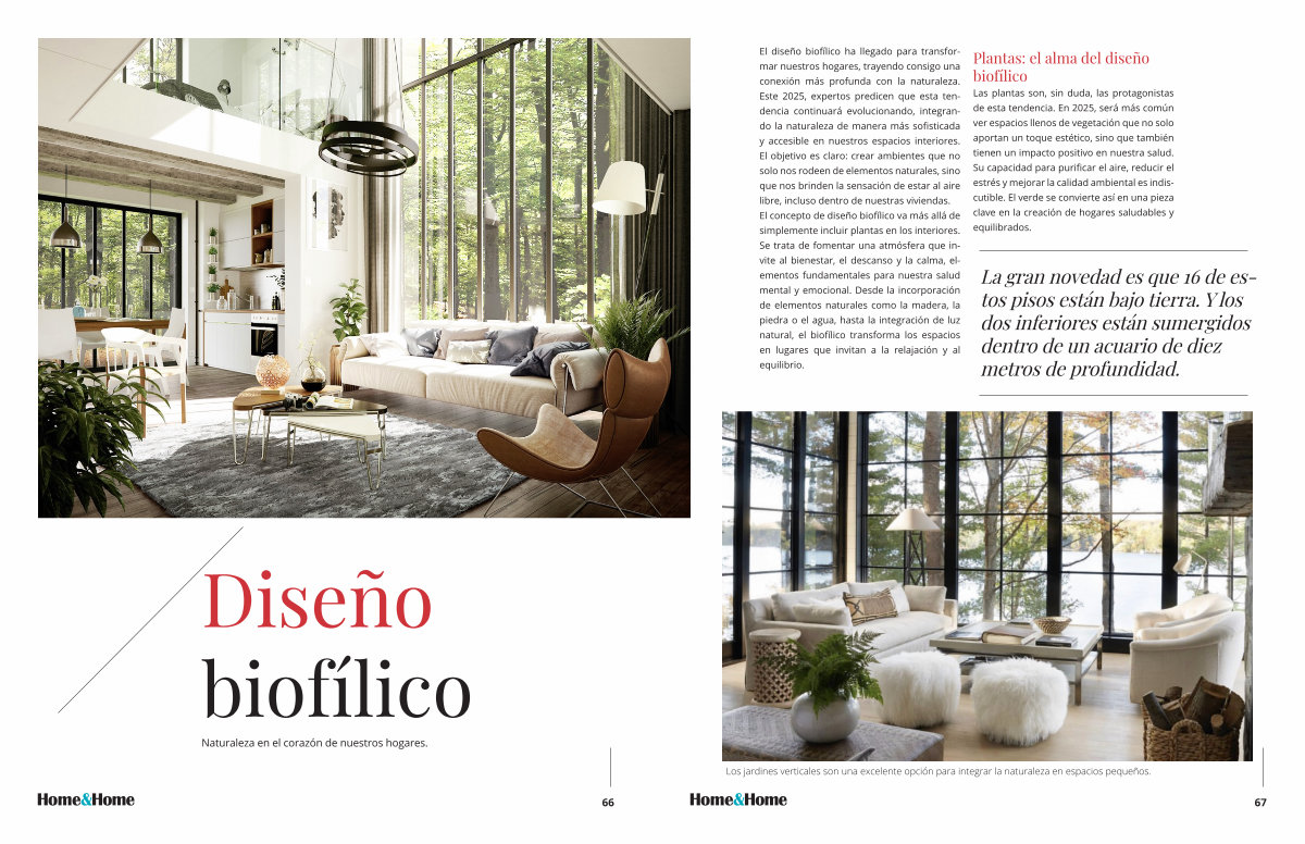 El diseño biofílico ha llegado para transformar nuestros hogares, trayendo consigo una conexión más profunda con la naturaleza. Este 2025, expertos predicen que esta tendencia continuará evolucionando, integrando la naturaleza de manera más sofisticada y accesible en nuestros espacios interiores. El objetivo es claro: crear ambientes que no solo nos rodeen de elementos naturales, sino que nos brinden la sensación de estar al aire libre, incluso dentro de nuestras viviendas. El concepto de diseño biofílico va más allá de simplemente incluir plantas en los interiores. Se trata de fomentar una atmósfera que invite al bienestar, el descanso y la calma, elementos fundamentales para nuestra salud mental y emocional. Desde la incorporación de elementos naturales como la madera, la piedra o el agua, hasta la integración de luz natural, el biofílico transforma los espacios en lugares que invitan a la relajación y al equilibrio.