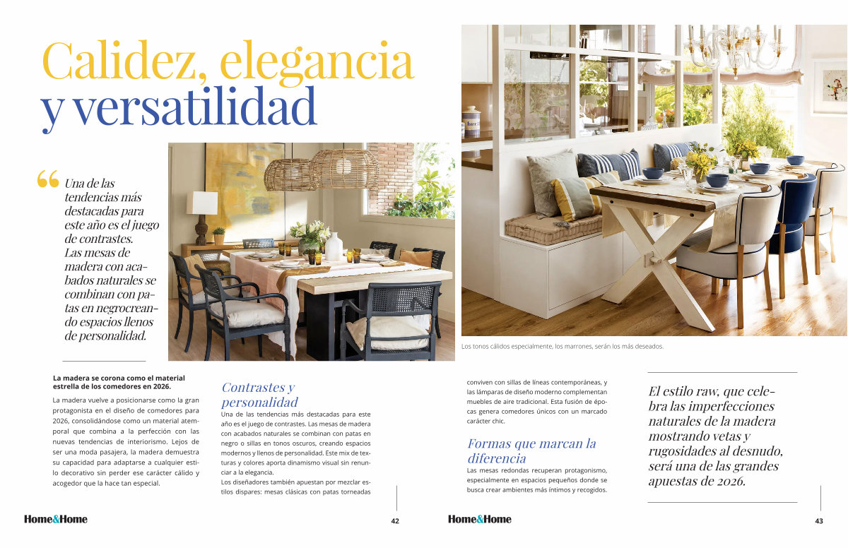 La madera vuelve a posicionarse como la gran protagonista en el diseño de comedores para 2026, consolidándose como un material atemporal que combina a la perfección con las nuevas tendencias de interiorismo. Lejos de ser una moda pasajera, la madera demuestra su capacidad para adaptarse a cualquier estilo decorativo sin perder ese carácter cálido y acogedor que la hace tan especial.