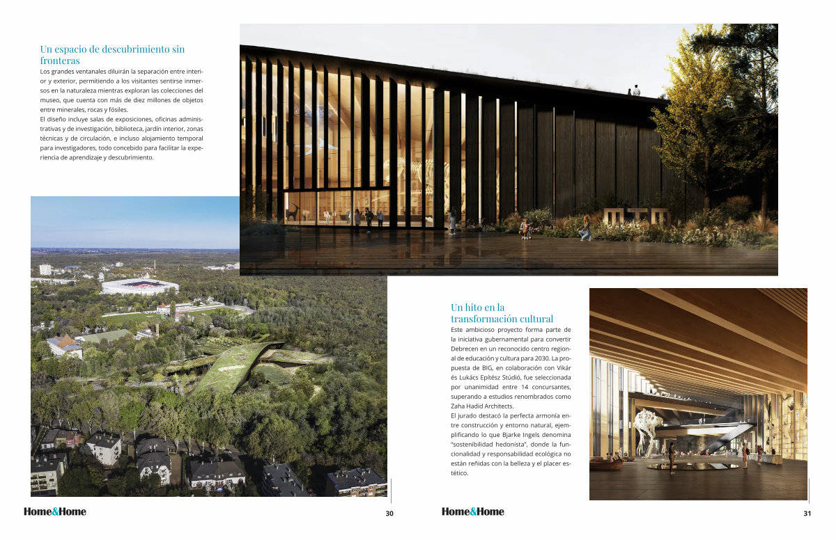 Este ambicioso proyecto forma parte de la iniciativa gubernamental para convertir Debrecen en un reconocido centro regional de educación y cultura para 2030. La propuesta de BIG, en colaboración con Vikár és Lukács Epítész Stúdió, fue seleccionada por unanimidad entre 14 concursantes, superando a estudios renombrados como Zaha Hadid Architects. El jurado destacó la perfecta armonía entre construcción y entorno natural, ejemplificando lo que Bjarke Ingels denomina“ sostenibilidad hedonista”, donde la funcionalidad y responsabilidad ecológica no están reñidas con la belleza y el placer estético.