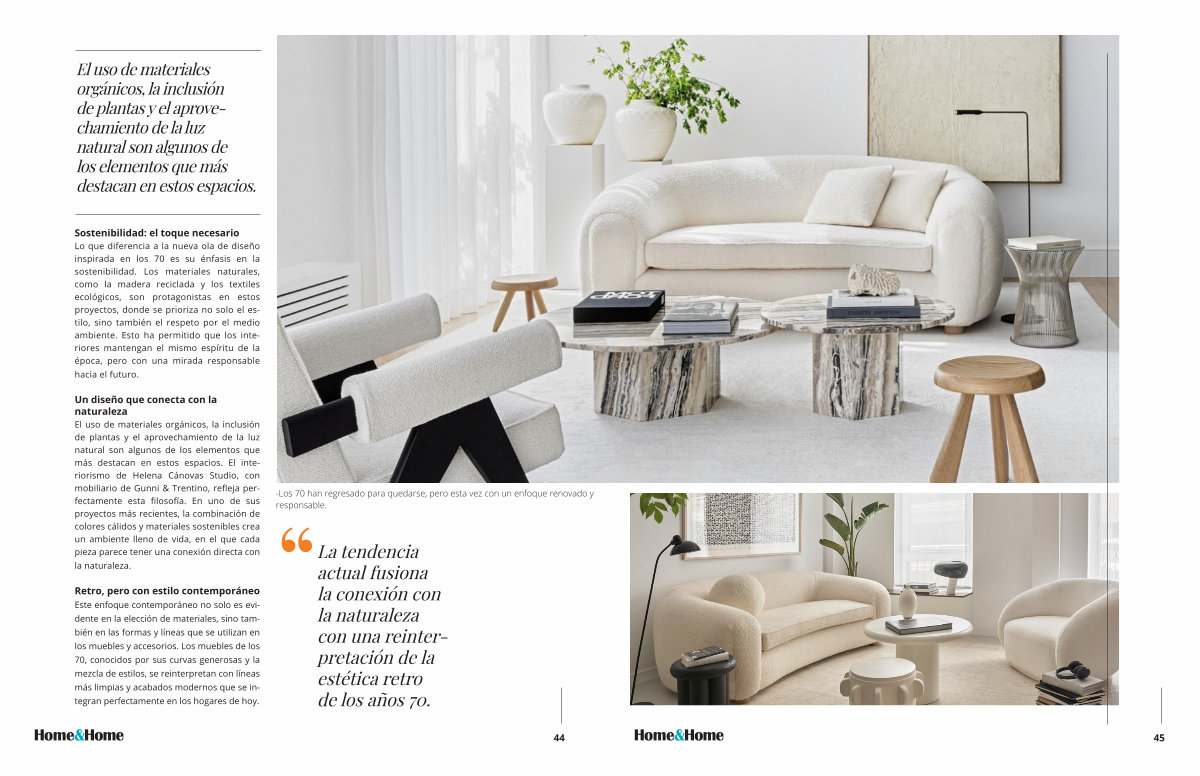 Retro, pero con estilo contemporáneo Este enfoque contemporáneo no solo es evidente en la elección de materiales, sino también en las formas y líneas que se utilizan en los muebles y accesorios. Los muebles de los 70, conocidos por sus curvas generosas y la mezcla de estilos, se reinterpretan con líneas más limpias y acabados modernos que se integran perfectamente en los hogares de hoy.