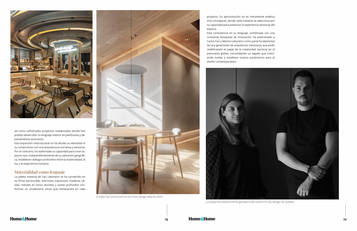así como sofisticados proyectos residenciales donde han podido desarrollar su lenguaje interior en penthouse y departamentos exclusivos. Esta expansión internacional no ha diluido su identidad ni su compromiso con una arquitectura narrativa y sensorial. Por el contrario, ha reafirmado su capacidad para crear espacios que, independientemente de su ubicación geográfica, establecen diálogos profundos entre la materialidad, la luz y la experiencia humana.