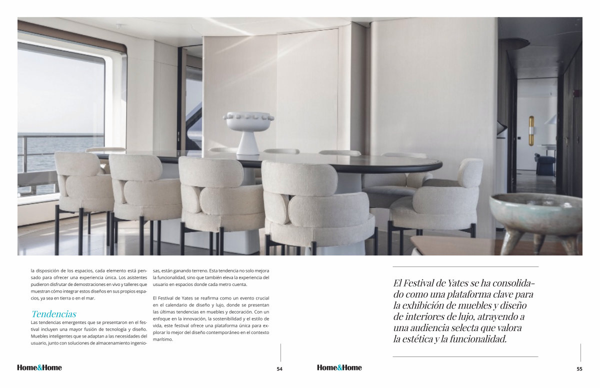 El Festival de Yates se reafirma como un evento crucial en el calendario de diseño y lujo , donde se presentan las últimas tendencias en muebles y decoración . Con un enfoque en la innovación , la sostenibilidad y el estilo de vida , este festival ofrece una plataforma única para explorar lo mejor del diseño contemporáneo en el contexto marítimo .
