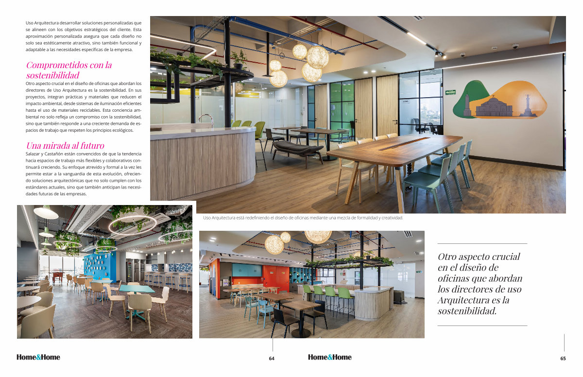 Otro aspecto crucial en el diseño de oficinas que abordan los directores de Uso Arquitectura es la sostenibilidad . En sus proyectos , integran prácticas y materiales que reducen el impacto ambiental , desde sistemas de iluminación eficientes hasta el uso de materiales reciclables . Esta conciencia ambiental no solo refleja un compromiso con la sostenibilidad , sino que también responde a una creciente demanda de espacios de trabajo que respeten los principios ecológicos .