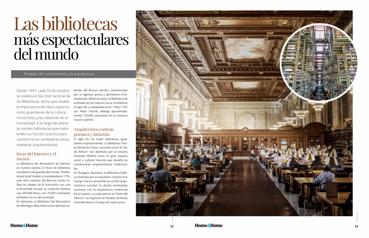 Desde 1997, cada 24 de octubre se celebra el Día Internacional de las Bibliotecas, fecha que resalta la importancia de estos espacios como guardianes de la cultura, los escritos y las creencias de la humanidad. A lo largo del planeta, existen bibliotecas que trascienden su función práctica para convertirse en verdaderas obras maestras arquitectónicas.