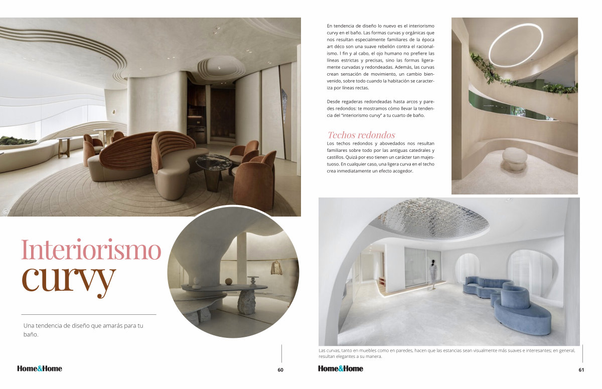 En tendencia de diseño lo nuevo es el interiorismo curvy en el baño . Las formas curvas y orgánicas que nos resultan especialmente familiares de la época art déco son una suave rebelión contra el racionalismo . l fin y al cabo , el ojo humano no prefiere las líneas estrictas y precisas , sino las formas ligeramente curvadas y redondeadas . Además , las curvas crean sensación de movimiento , un cambio bienvenido , sobre todo cuando la habitación se caracteriza por líneas rectas .