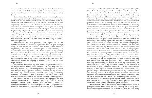 society, and so are bouts of depression and inaction that are