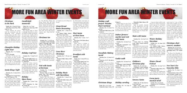 party from 6 to 7 p. m. at MontiArts before heading out on a musical community stroll at 7 p. m. This annual tradition features the instrumental composition“ Unsilent Night,” which is intended to be played simultaneously on people’ s individual devices as they stroll through downtown in a group. Download a track ahead of time at unsilentnight. com. Info: Visit montiarts. com