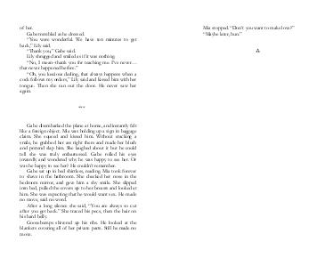 Mia stopped. “Don’t you want to make love?” “Maybe later, hun.”