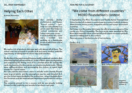 In September, The Moro Foundation and Danila Kumar International School invited all students to participate in a contest in which students drew pictures, wrote poems, magazine articles and essays about their countries.