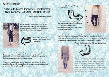 She just took some jeans and a cozy jumper with some warm and comftorble socks. The jeans are the POP of the outfit, since they have little sparkles under the pockets. The jumper is to keep her warm in school and under her jacket. With this style I would add some nice boots or even sneakers or some booties(boots with the heel).