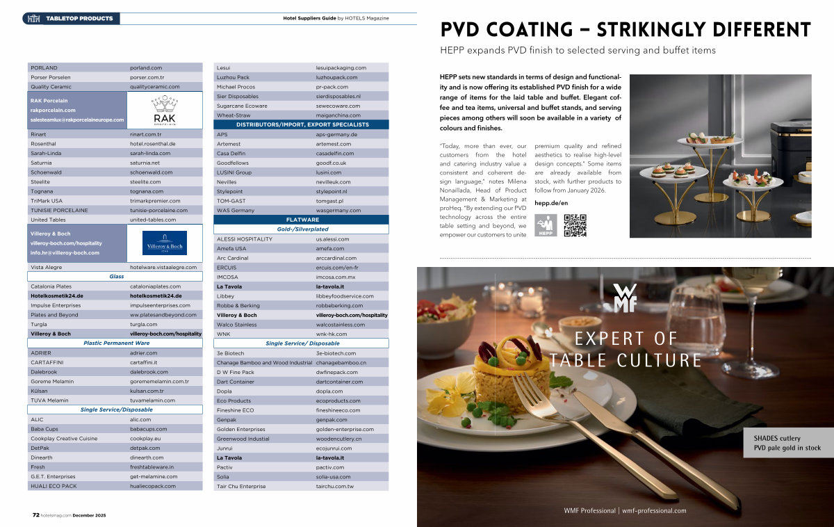 “ Today, more than ever, our customers from the hotel and catering industry value a consistent and coherent design language,” notes Milena Nonaillada, Head of Product Management & Marketing at proHeq.“ By extending our PVD technology across the entire table setting and beyond, we empower our customers to unite premium quality and refined aesthetics to realise high-level design concepts.” Some items are already available from stock, with further products to follow from January 2026.