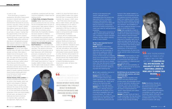 Regardless , transaction activity will slow down in all segments as buyers take a pause to determine what the new normal is and how to make money . Robert Hecker , Horwath HTL , Singapore : I ’ m not so sure higher interest rates will add to any distress already out there . More likely , it added more to the buyers ’ costs and thus to the buyer-seller price gap . The sales that are occurring are generally not associated with distress as pricing is rather robust ( more like pre-COVID levels ). The driver seems to be positive attitudes / outlooks about travel and hotel performance recovery and plenty of equity-seeking investment . Assets being sold / bought tend to be full-service hotels , good locations , prime assets . Charles Human , HVS , London : It ’ s looking inevitable that there will be stress in the market , which will lead to some degree of distress . In Europe , there is usually a lag between the onset of this and any distressed selling that may result . So , for the time being ( at least the remainder of this year and probably Q1 next year ), we expect to see relatively low levels of activity as investors take a wait-andsee approach . Right now , it ’ s the uncertainty combined with the high cost / low availability of debt that are stalling activity . J . Pedro Petiz , Avington Financial , London : Higher rates have quickly arrived and become the new normal for the foreseeable future as part of central banks ’ fight against inflation in the aftermath of a decade of highly dovish monetary policy . Historically , the hospitality industry has been resilient to inflation . However , higher interest rates over an extended time typically results in increased capitalization rates and pressure on real estate asset prices . Andrew Broad , RobertDouglas , San Francisco : It is inevitable that rising interest rates will lead to rising cap rates . The question becomes whether hotel net revenues can at least keep pace with inflationary pressures , including the cost of capital , as opposed to falling behind .
