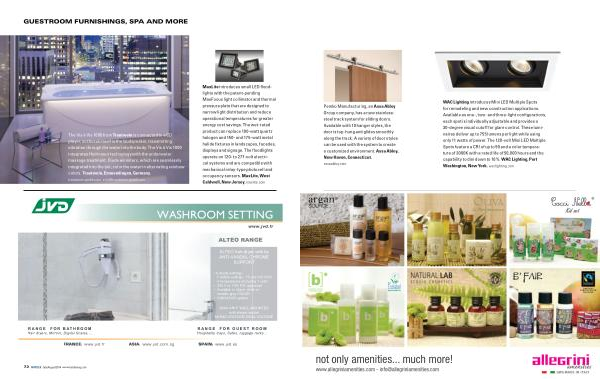 WAC Lighting introduces Mini LED Multiple Spots for remodeling and new construction applications . Available as one- , two- and three-light configurations , each spot is individually adjustable and provides a 30-degree visual cutoff for glare control . These luminaires deliver up to 755 lumens per light while using only 11 watts of power . The 120-volt Mini LED Multiple Spots feature a CRI of up to 90 and a color temperature of 3000K with a rated life of 50,000 hours and the capability to dim down to 10 %. WAC Lighting , Port Washington , New York . waclighting . com ongoing certification process not only amenities ... much more ! www . allegriniamenities . com - info @ allegriniamenities . com