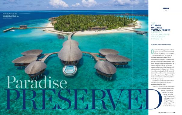 THE ST . REGIS MALDIVES VOMMULI RESORT IMPARTS A VISUAL MESSAGE OF ECOLOGY , FRAGILITY .