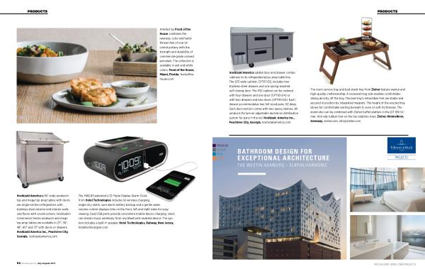 The room service tray and bed stand tray from Zieher feature walnut and high-quality craftsmanship . A recessed long side enables comfortable dining directly off the tray . The bed tray ’ s retractable feet are stable and secured in position by integrated magnets . The height of the erected tray allows for comfortable seating beneath it , even on soft mattresses . The stand also can be combined with Zieher buffet platters in the 2 / 1 GN format . Anti-slip rubber feet on the top stabilize trays . Zieher , Himmelkron , Germany . zieher . com , info @ zieher . com