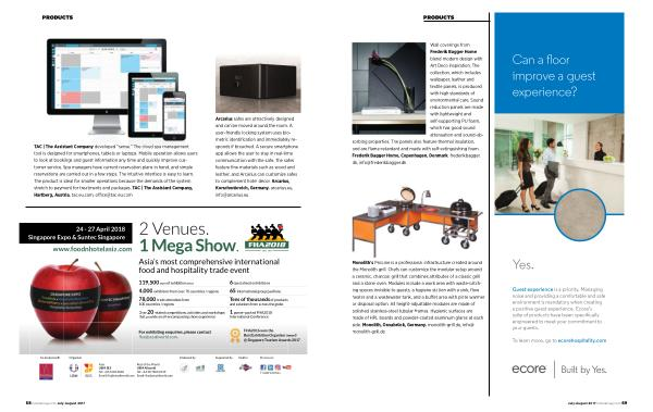 TAC | The Assistant Company developed “ sense .” The cloud spa management tool is designed for smartphones , tablets or laptops . Mobile operation allows users to look at bookings and guest information any time and quickly improve customer service . Spa managers have current reservation plans in hand , and simple reservations are carried out in a few steps . The intuitive interface is easy to learn . The product is ideal for smaller operations because the demands of the system stretch to payment for treatments and packages . TAC | The Assistant Company , Hartberg , Austria . tac . eu . com , office @ tac . eu . com