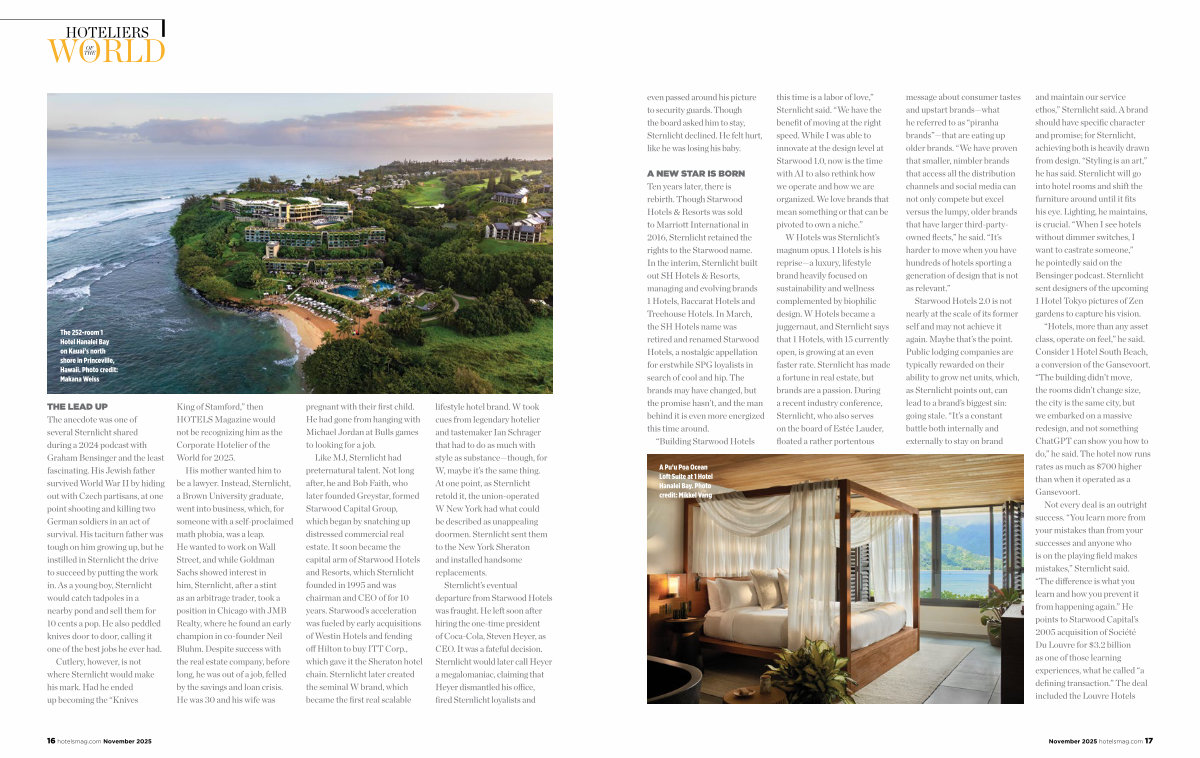 this time is a labor of love,” Sternlicht said.“ We have the benefit of moving at the right speed. While I was able to innovate at the design level at Starwood 1.0, now is the time with AI to also rethink how we operate and how we are organized. We love brands that mean something or that can be pivoted to own a niche.”