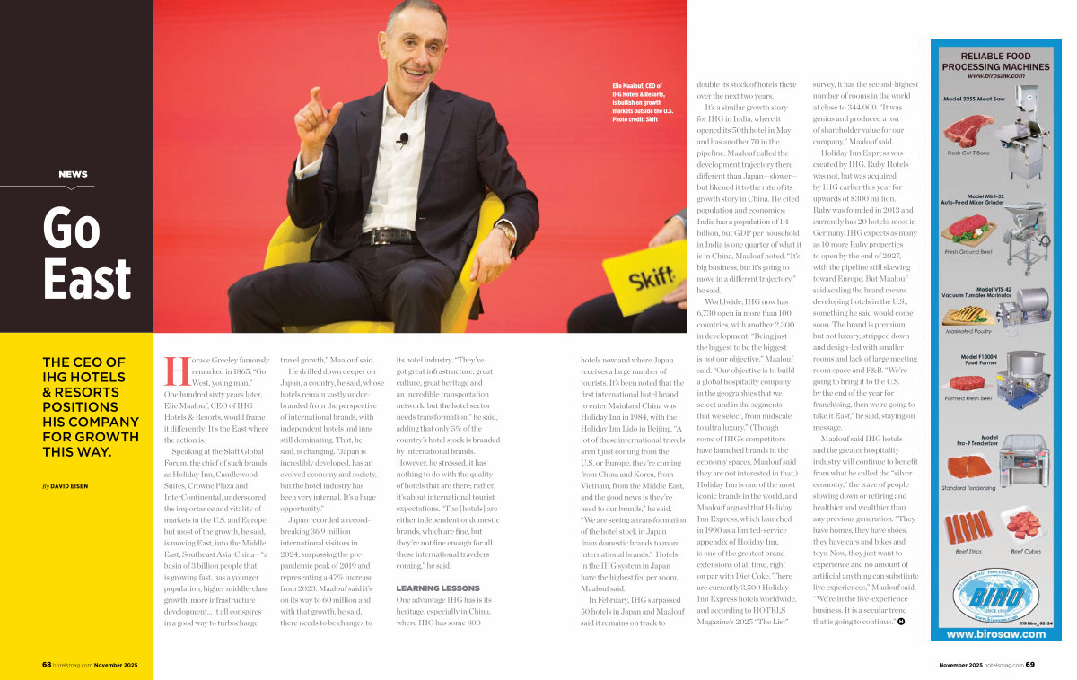 Horace Greeley famously remarked in 1865:“ Go West, young man.” One hundred sixty years later, Elie Maalouf, CEO of IHG Hotels & Resorts, would frame it differently: It’ s the East where the action is. Speaking at the Skift Global Forum, the chief of such brands as Holiday Inn, Candlewood Suites, Crowne Plaza and InterContinental, underscored the importance and vitality of markets in the U. S. and Europe, but most of the growth, he said, is moving East, into the Middle East, Southeast Asia, China—“ a basin of 3 billion people that is growing fast, has a younger population, higher middle-class growth, more infrastructure development... it all conspires in a good way to turbocharge