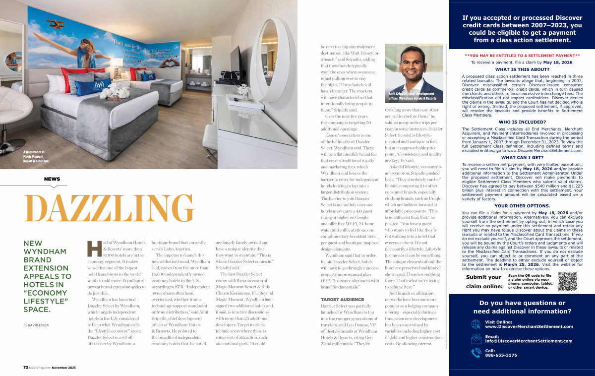 excluded entities, go to www. DiscoverMerchantSettlement. com. provide additional information. Alternatively, you can exclude You can file a claim for a payment by May 18, 2026 and / or yourself from the settlement by opting out, in which case you