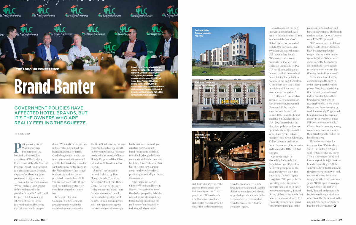 down.‘ We are still seeing delays in that,” which, he added, has been exacerbated by tariffs. On the bright side, he said that interest rate reductions would give the hotel industry a needed shot in the arm. So far this year, the Federal Reserve has issued one rate cut with two more predicted, many believe. Still,“ we are now used to it,” Pepper said, noting that construction costs have come down some, too.