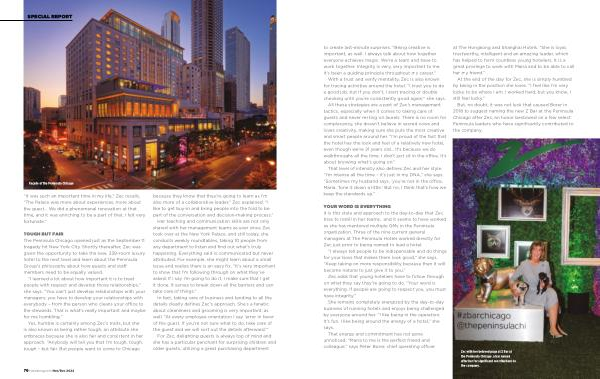 TOUGH BUT FAIR The Peninsula Chicago opened just as the September 11 tragedy hit New York City . Shortly thereafter , Zec was given the opportunity to take the new , 339-room luxury hotel to the next level and learn about the Peninsula Group ’ s philosophy about how guests and staff members need to be equally valued .