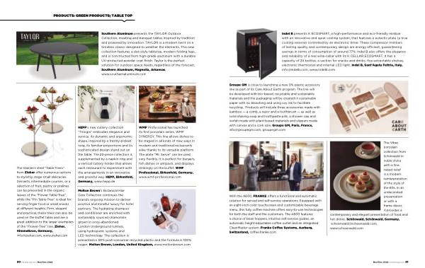 The stainless steel “ Table-Trees ” from Zieher offer numerous options to stylishly stage small delicacies . Desserts , intermediate courses , or a selection of fruit , pastry or pralines can be presented in the organic leaves of the “ Flower Table-Tree ”, while the “ Pin Table-Tree ” is ideal for serving finger food or small snacks at different heights . Firm , elegant and practical , these trees can also be used on the buffet table and are a great addition to the larger exemplars of the “ Flower-Tree ” line . Zieher , Himmelkron , Germany , info @ zieher . com , www . zieher . com