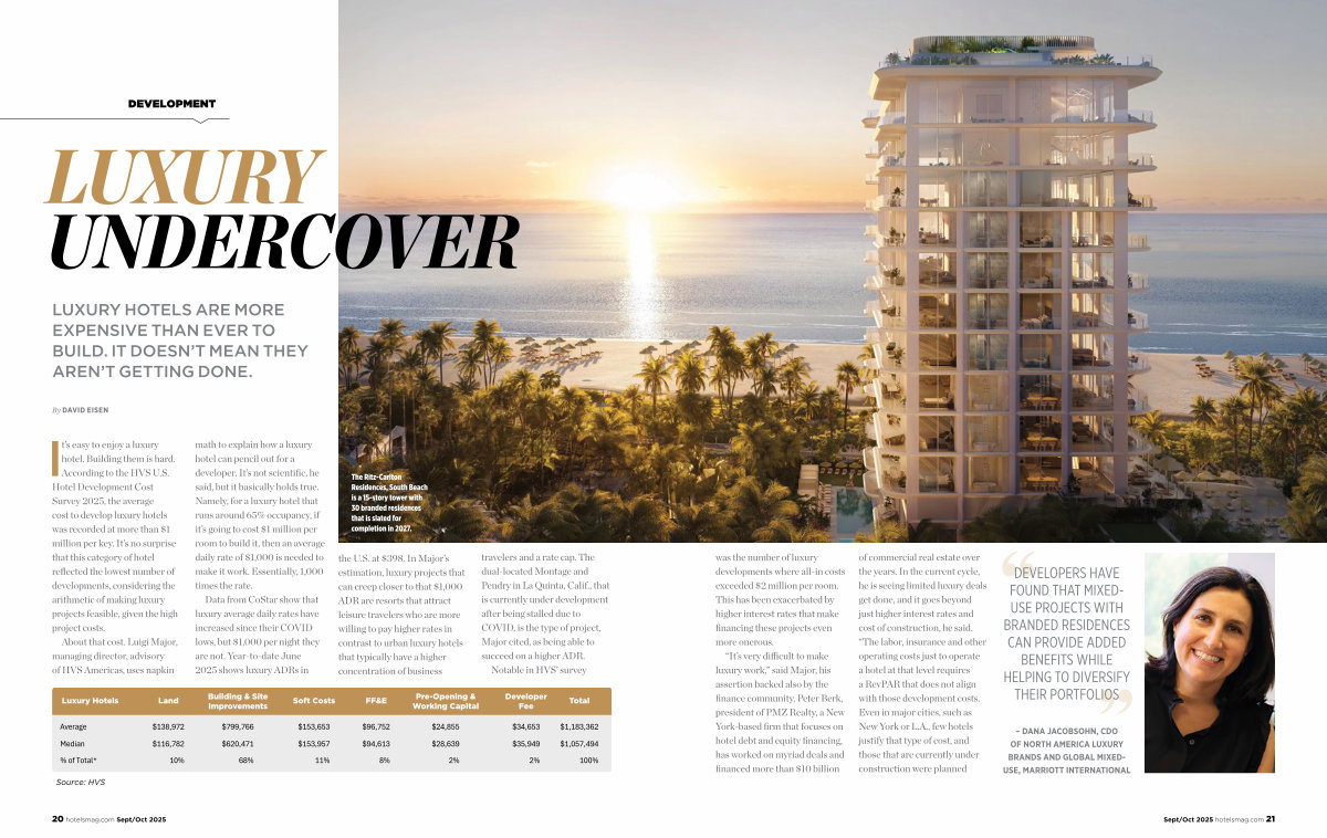“ It’ s very difficult to make luxury work,” said Major, his assertion backed also by the finance community. Peter Berk, president of PMZ Realty, a New York-based firm that focuses on hotel debt and equity financing, has worked on myriad deals and financed more than $ 10 billion of commercial real estate over the years. In the current cycle, he is seeing limited luxury deals get done, and it goes beyond just higher interest rates and cost of construction, he said.“ The labor, insurance and other operating costs just to operate a hotel at that level requires a RevPAR that does not align with those development costs. Even in major cities, such as New York or L. A., few hotels justify that type of cost, and those that are currently under construction were planned