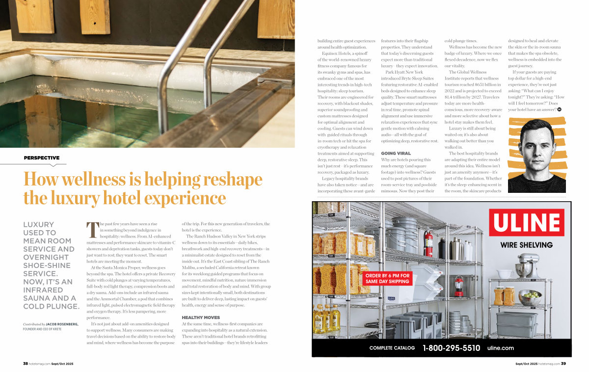 he past few years have seen a rise in something beyond indulgence in hospitality: wellness. From AI-enhanced mattresses and performance skincare to vitamin-C showers and deprivation tanks, guests today don’ t just want to rest; they want to reset. The smart hotels are meeting the moment.