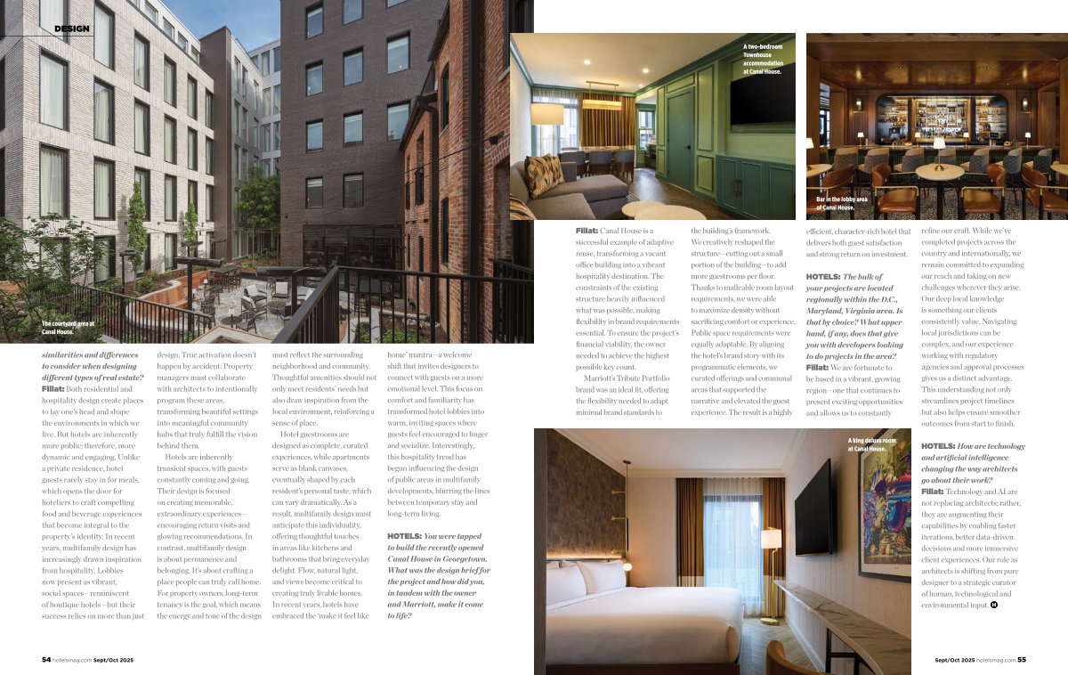 HOTELS: You were tapped to build the recently opened Canal House in Georgetown. What was the design brief for the project and how did you, in tandem with the owner and Marriott, make it come to life?