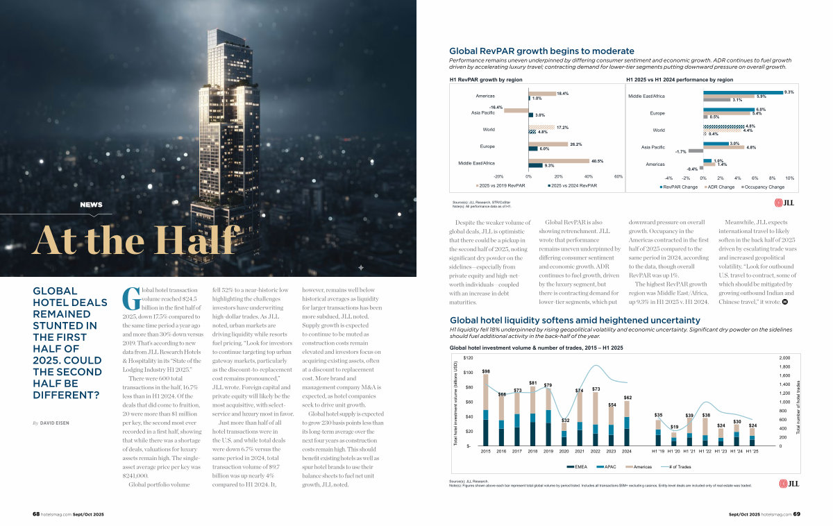downward pressure on overall growth. Occupancy in the Americas contracted in the first half of 2025 compared to the same period in 2024, according to the data, though overall RevPAR was up 1 %.