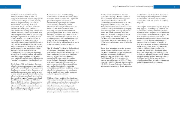 which school they attend and how much antiIsrael sentiment they perceive, a significant