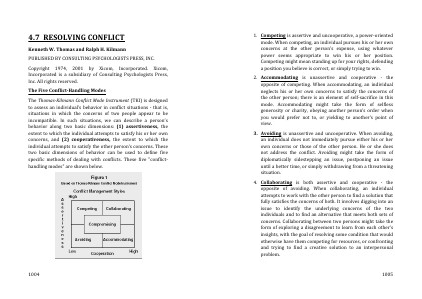 specific methods of dealing with conflicts. These five "conflicthandling modes" are shown below.
