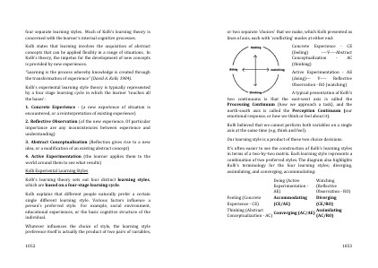 four separate learning styles. Much of Kolb’s learning theory is