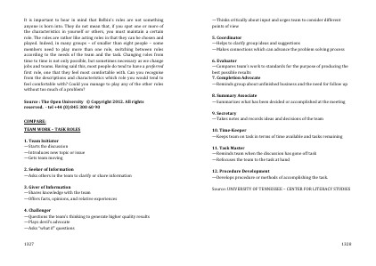 TEAM WORK – TASK ROLES