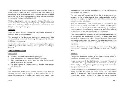 Transactional Leadership, once the contract is in place, takes a 'telling'