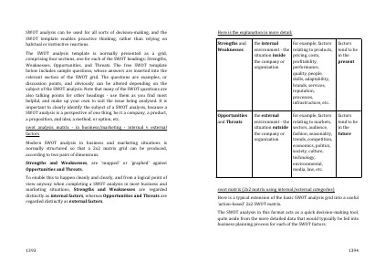 Here is a typical extension of the basic SWOT analysis grid into a useful