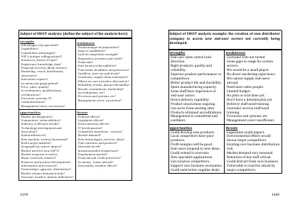 Subject of SWOT analysis: (define the subject of the analysis here)