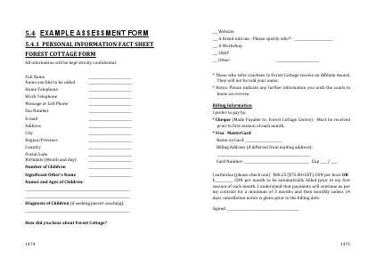 * Cheque (Made Payable to: Forest Cottage Centre) - Must be received