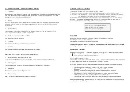4th generation: time management is in fact a misnomer. We cannot manage time, but must manage