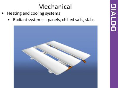 Mechanical • Hea\ng and cooling systems • Radiant systems – panels, chilled sails, slabs