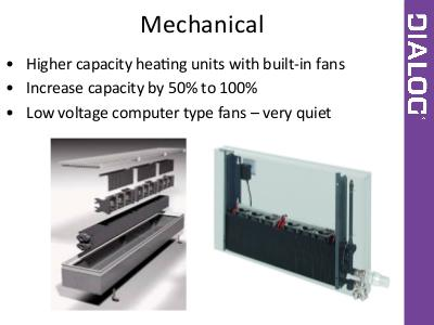 Mechanical • Higher capacity hea\ng units with built-‐in fans • Increase capacity by 50% to 100% • Low voltage computer type fans – very quiet