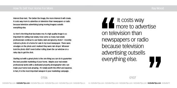 Starting out with a great photo is the one thing you can do to guarantee the best possible marketing of your home . Maybe your real estate professional works with a dedicated property photographer who can make your home look amazing . It ’ s totally worth the effort and expense . In fact , it is the most important weapon in your marketing campaign .